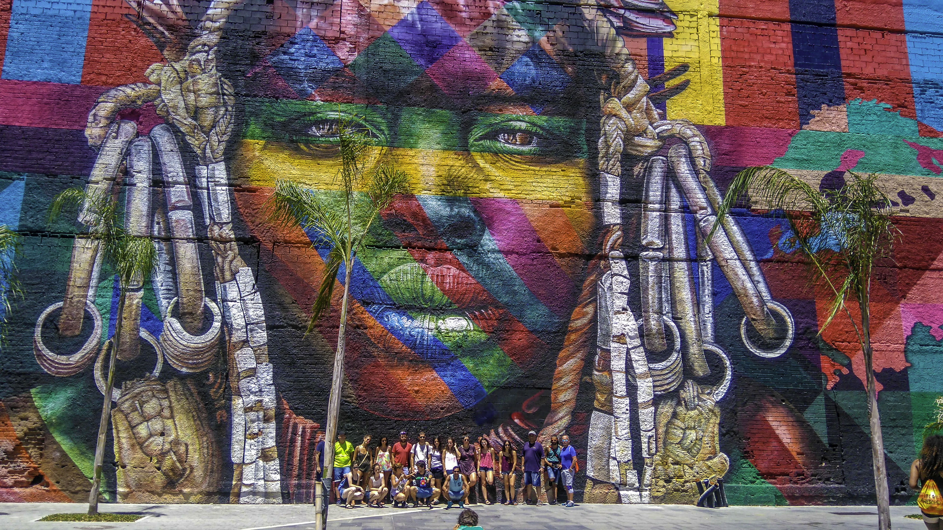 On the way to AquaRio, one can admire several murals. Among them, of course, the "Todos Somos Um," We Are All One, mural by Brazilian artist Eduardo Kobra. Guinness World Records recognized it as the largest mural in the world.